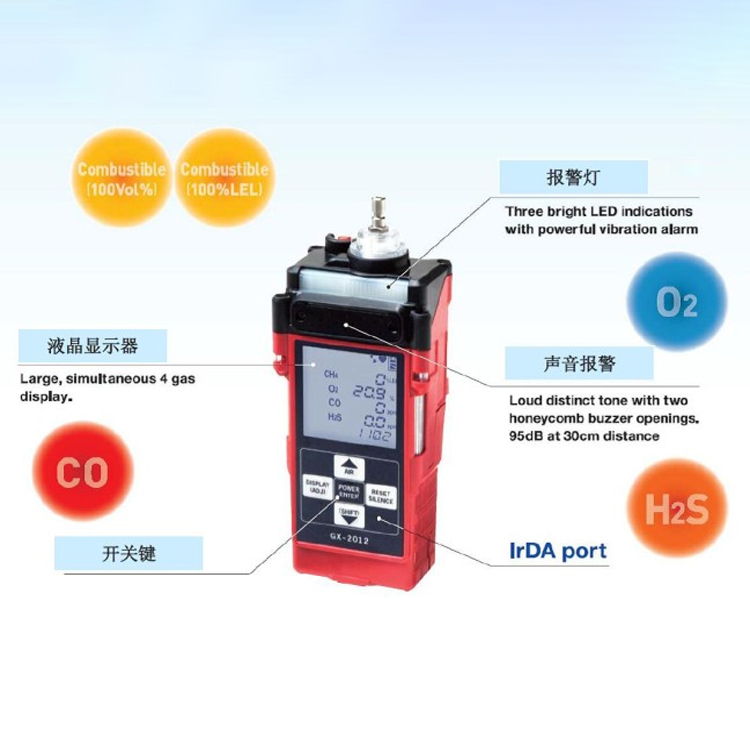 ►检测气体: 所有可燃气体、 氧气(O2)、 硫化氢(H2S)、 一氧化碳(CO)